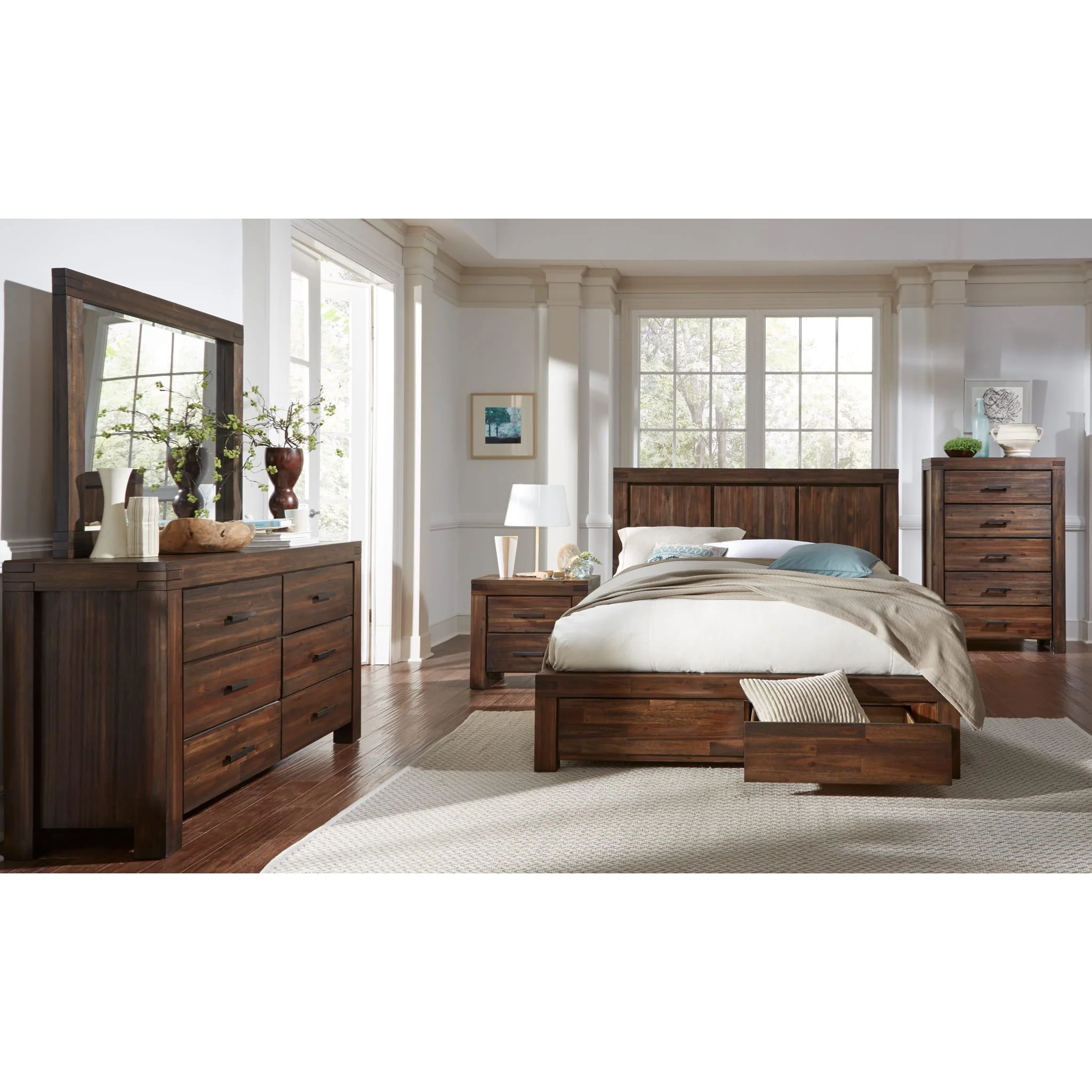 - Clean-lined modern styling with all solid wood construction, mortise and tenon corners and a vintage finish